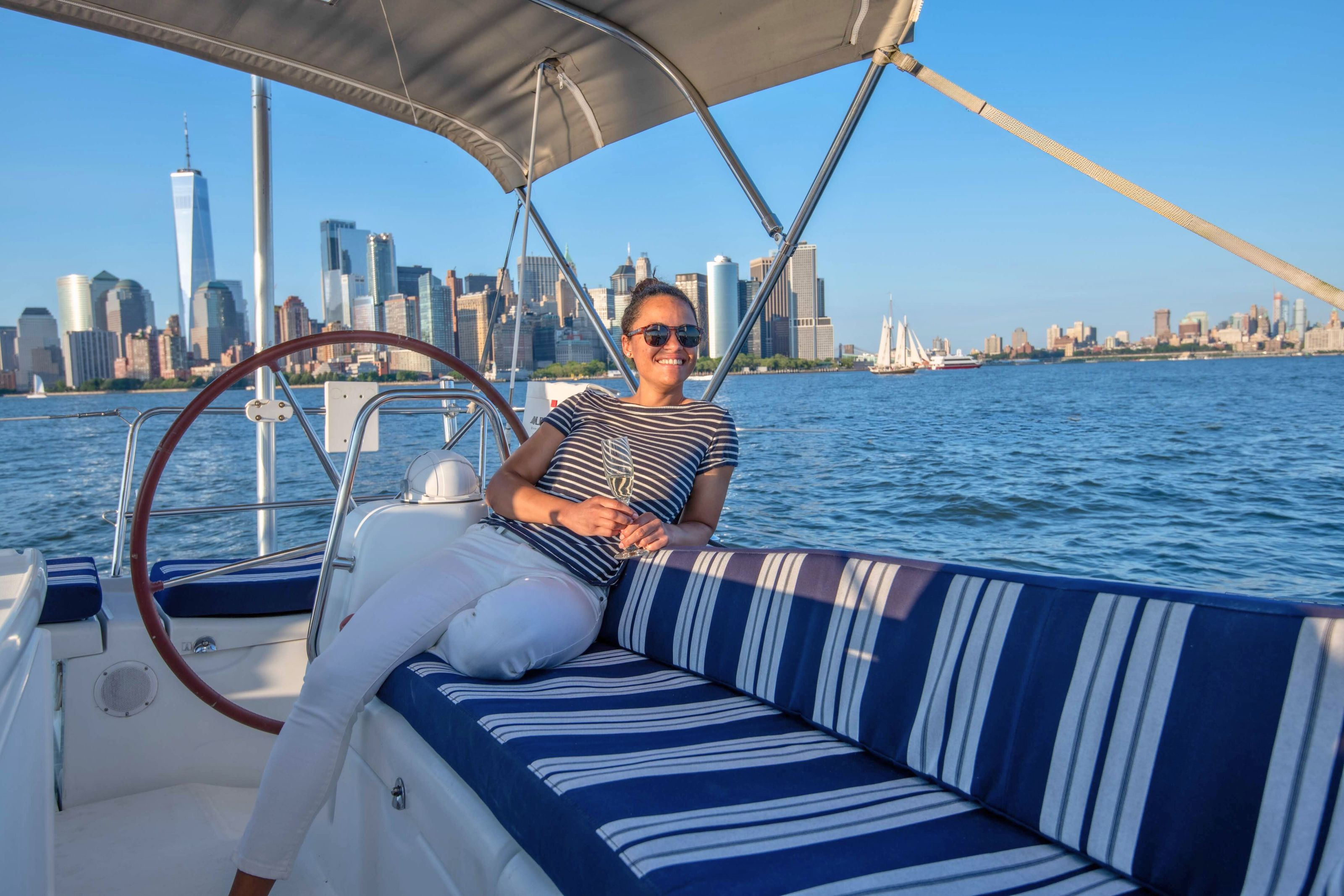 Whether you choose a 2-hour sunset sail or a 4-hour celebration charter, your route is tailored to your timeline. This isn’t a rigid tour boat schedule. Your NYC boat rental moves at your pace. Sailing is not just a boat ride, it’s a destination.